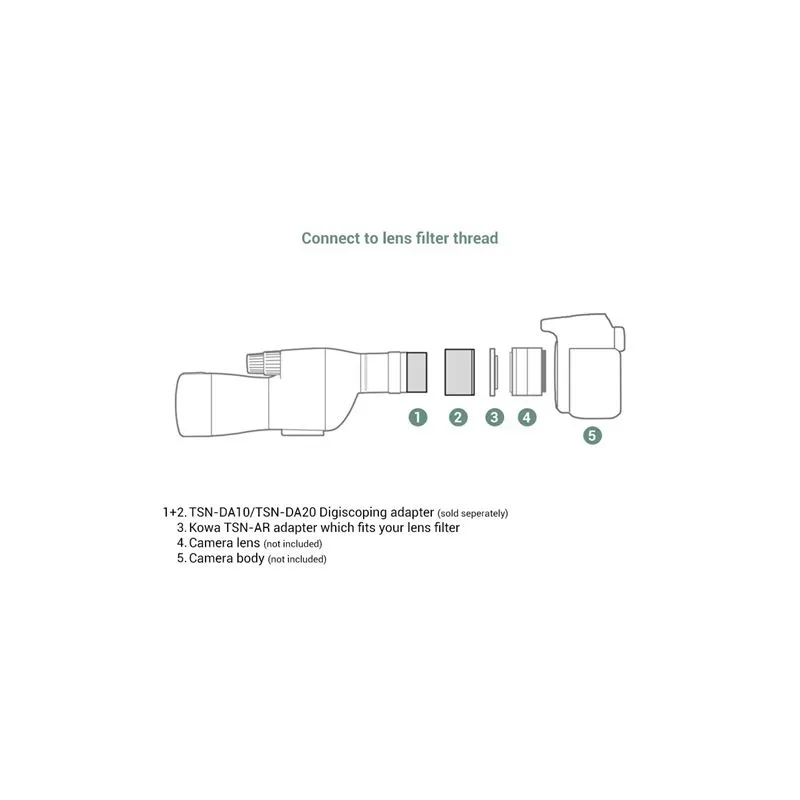 You need the Kowa Adapter Ring TSN-AR28 to connect your camera lens with Ø28mm filter thread to a TSN-DA10 or TSN-DA20 digiscoping adapter. Connect your digital camera to your Kowa spotting scope and use your spotting scope as a telephoto lens.
