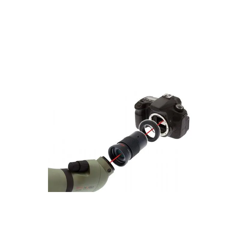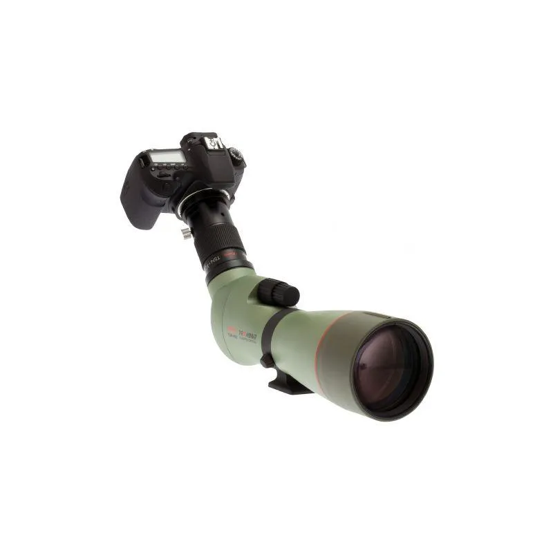 Optical camera adapter for Kowa TSN770 and TSN880 series with variable focal length of 680-1000mm. This camera adapter is directly fitted onto the spotting scope. With an optional T2 ring the adapter fits on the bayonet mount of your reflex camera. The adapter is placed instead of the ocular and has its own fully multi coated lens system. It can focus from 5 metres till infinite. The brightness is with TSN881/88 f/7.4 till 11.4, with TSN771/773 f/8.4 till 13.0. Ideal for digiscoping, especially with the fluorite models (883 / 773). A perfect solution for taking good pictures at an even greater distance. Weight 350 grammes.