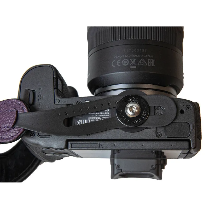 The curved S-shape of the strap makes it feel like the SpiderPro V2 is an extension of your arm. The S shape is designed to allow unobstructed access to the battery door and memory card slots. While it offers additional support, using the clip-on wristband is a matter of personal preference. The foam padding and padding of the hand strap provide comfort and optimal hand positioning for operating your camera's buttons. Plus, with repeated use, the strap adapts to the unique shape of your hand for a custom fit.