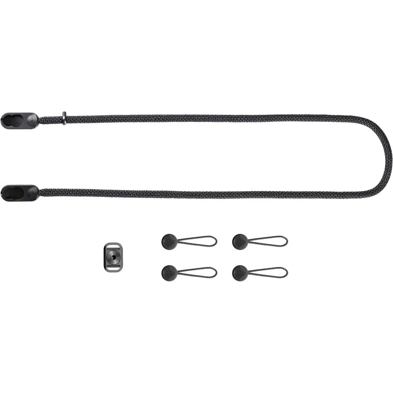 Viduje sukurta pintinė nailono/poliesterio virvė užtikrina optimalų stiprumo, paminkštinimo ir tempimo balansą patogiam kameros nešiojimui. Virvės galai sklandžiai baigiasi spalvą atitinkančiu žemo profilio stiklo pluošto nailono Anchor Link greitojo prijungimo jungtimi, užtikrinančia saugų ir lengvą kameros prijungimą. Elegantiška anodizuoto aliuminio aksesuarų kilpa leidžia jums pritvirtinti atsarginį Anchor, leidžiančią jums laikyti diržą ant kūno, kai nuimsite kamerą.