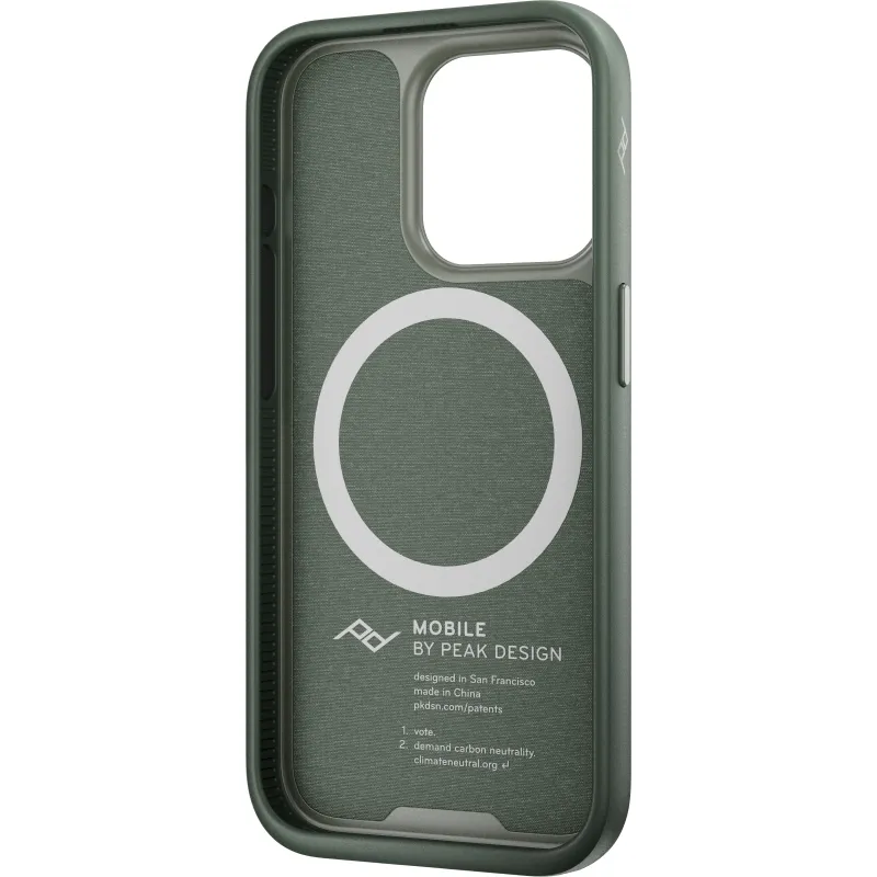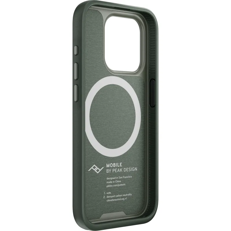A phone case with the perfect balance of slimness, smart aesthetics, and protection, plus it brilliantly connects to the entire Peak Design Mobile Ecosystem (and MagSafe accessories, too). Its like a tuxedo for your phone—a tuxedo with a slim 2.4 mm profile and protective rubberized bumper, all wrapped in beautiful nylon canvas shell. But what truly sets the Everyday Case apart is the brilliant magnetic/mechanical lock thats built right into it. We call this mounting technology SlimLink™, and its so fast and secure that it borders on magic. With this case on your phone, you can instantly connect to all Peak Design Mobile mounts, chargers, and accessories. It even works with Apple MagSafe chargers and accessories, too.