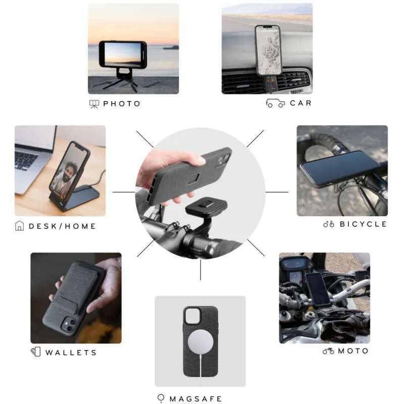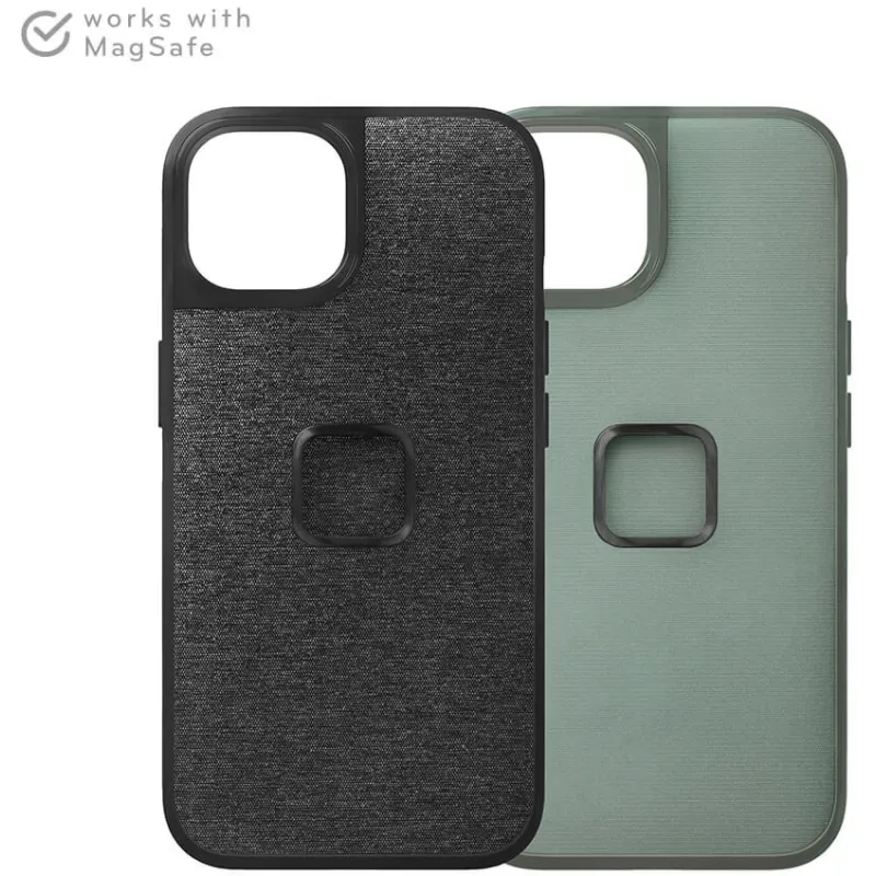 A phone case with the perfect balance of slimness, smart aesthetics, and protection, plus it brilliantly connects to the entire Peak Design Mobile Ecosystem (and MagSafe accessories, too). It's like a tuxedo for your phone—a tuxedo with a slim 2.4 mm profile and protective rubberized bumper, all wrapped in beautiful nylon canvas shell. But what truly sets the Everyday Case apart is the brilliant magnetic/mechanical lock that's built right into it. We call this mounting technology SlimLink™, and it's so fast and secure that it borders on magic. With this case on your phone, you can instantly connect to all Peak Design Mobile mounts, chargers, and accessories. It even works with Apple MagSafe chargers and accessories, too.
