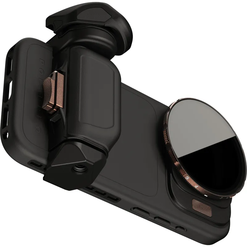 The redesigned iPhone 15 Pro and Pro Max, the LiteChaser 15 case is equipped with an aluminum protective plate that safeguards your lens between shooting sessions.