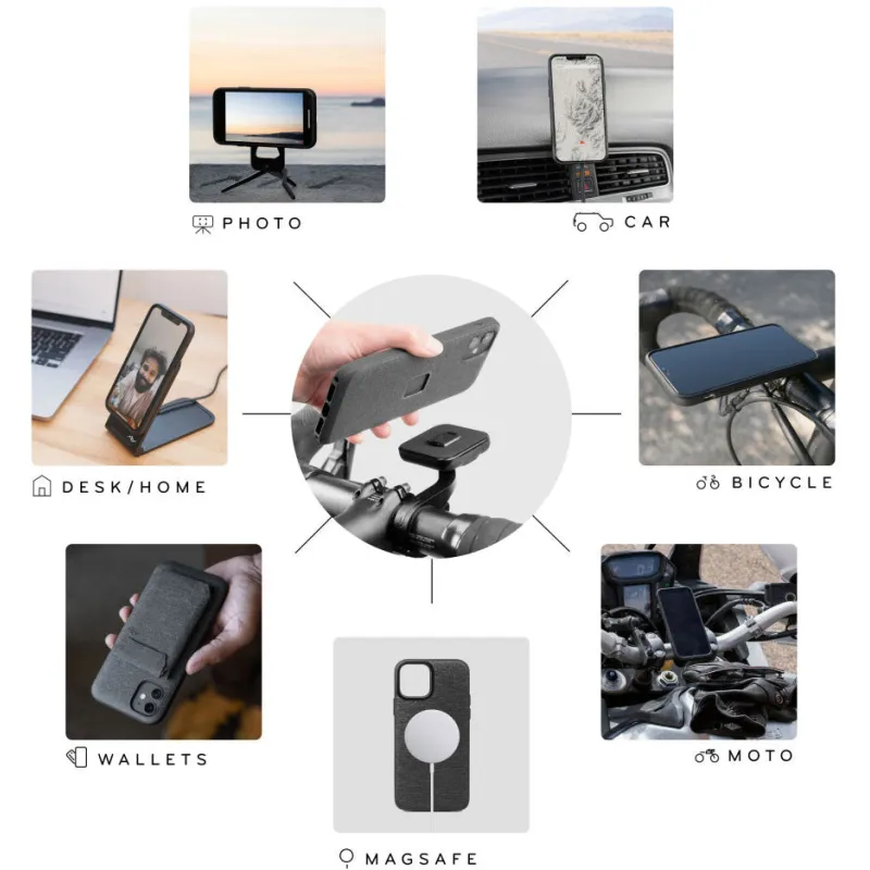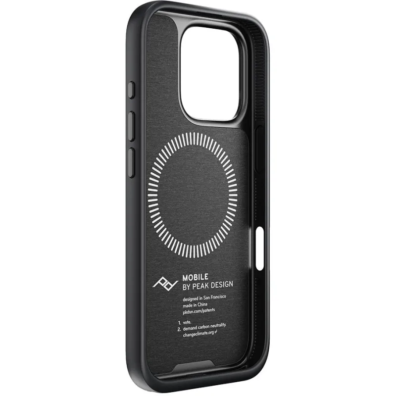 A phone case with the perfect balance of slimness, smart aesthetics, and protection, plus it brilliantly connects to the entire Peak Design Mobile Ecosystem (and MagSafe accessories, too). Its like a tuxedo for your phone—a tuxedo with a slim 2.4 mm profile and protective rubberized bumper, all wrapped in beautiful nylon canvas shell. But what truly sets the Everyday Case apart is the brilliant magnetic/mechanical lock thats built right into it. We call this mounting technology SlimLink™, and its so fast and secure that it borders on magic. With this case on your phone, you can instantly connect to all Peak Design Mobile mounts, chargers, and accessories. It even works with Apple MagSafe chargers and accessories, too.
