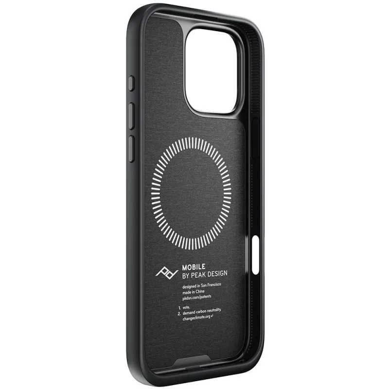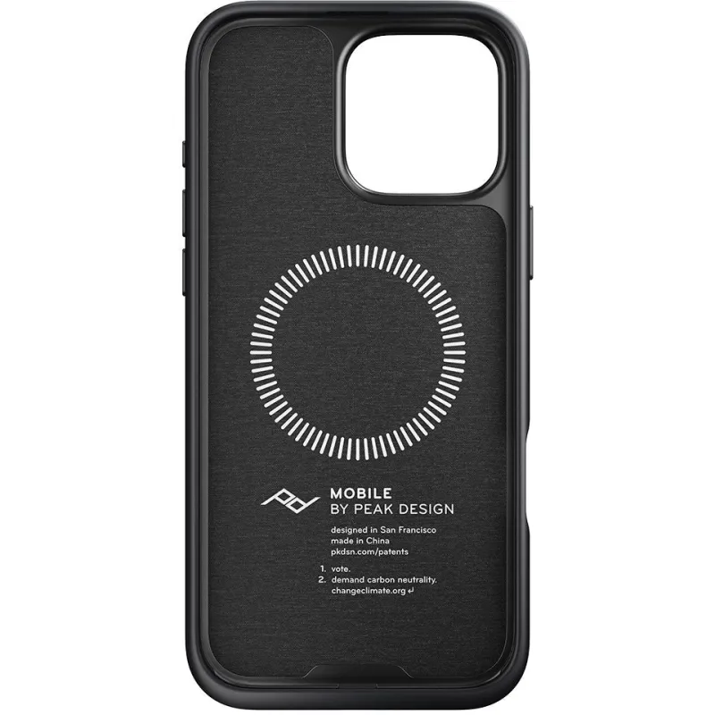 A phone case with the perfect balance of slimness, smart aesthetics, and protection, plus it brilliantly connects to the entire Peak Design Mobile Ecosystem (and MagSafe accessories, too). Its like a tuxedo for your phone—a tuxedo with a slim 2.4 mm profile and protective rubberized bumper, all wrapped in beautiful nylon canvas shell. But what truly sets the Everyday Case apart is the brilliant magnetic/mechanical lock thats built right into it. We call this mounting technology SlimLink™, and its so fast and secure that it borders on magic. With this case on your phone, you can instantly connect to all Peak Design Mobile mounts, chargers, and accessories. It even works with Apple MagSafe chargers and accessories, too.
