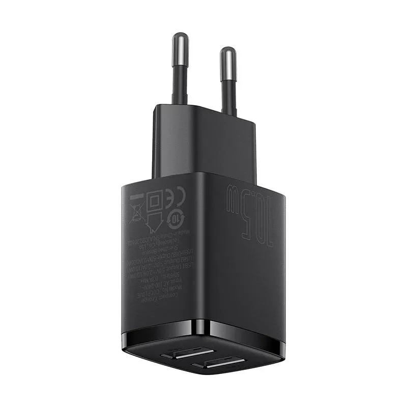 Lightweight and portable Baseus Compact Quick Charger is perfect both at home and while traveling. It is equipped with 2 USB ports, so you can conveniently charge up to 2 devices at the same time. It also ensures safety of use and is distinguished by broad compatibility.