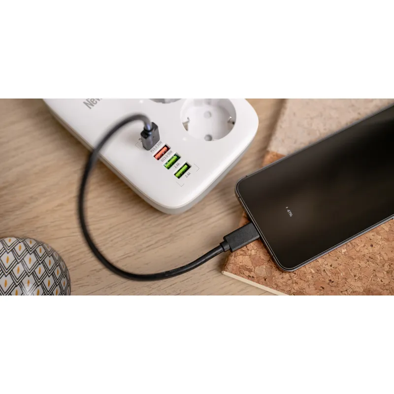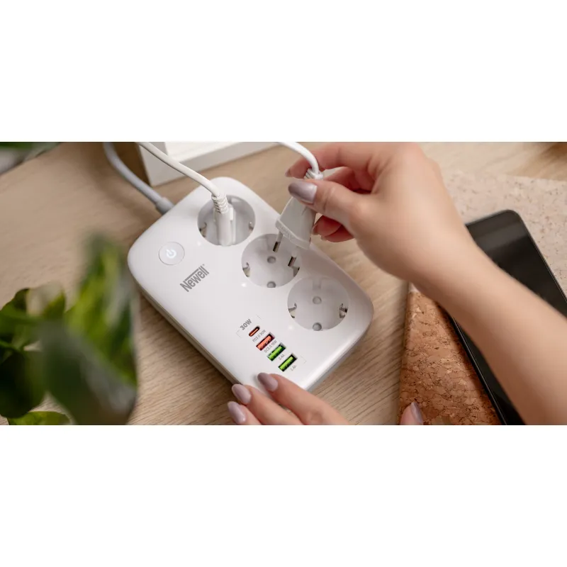 With the Newell Power Office WiFi PD 30W power strip, you can create a compact management centre for your electronics. You no longer have to choose which device to charge first. Three mains sockets and four USB ports allow you to power up to seven devices at once without tangled cables, adapters, or fighting for access to a power source. Newell Power Office is perfect for your home office desk, living room, or bedside table—anywhere technology meets everyday life.