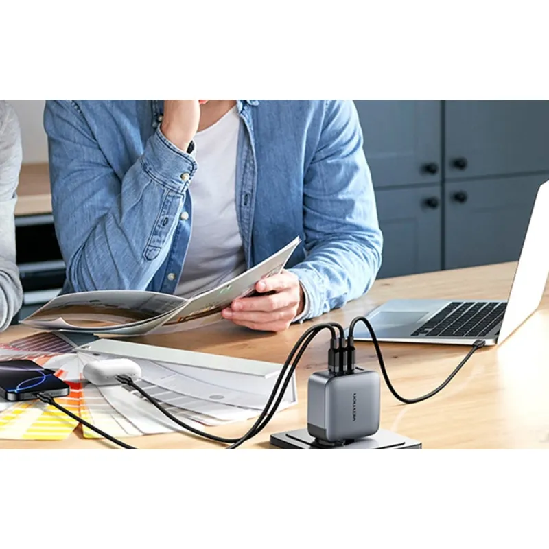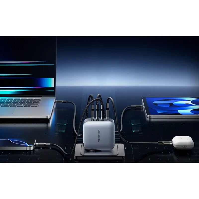 Vention TZ-FET-EU yra tinklo įkroviklis, naudojantis GaN V technologiją, kad pasiektų iki 100 vatų galios su sumažintomis įrenginio dimensijomis. Palyginti su standartiniu 96W įkrovikliu, jis yra iki 20% mažesnis. Jis gali greitai įkrauti tokias įrenginius kaip MacBook Pro (36% per 30 minučių), iPhone 16 Pro (54%), iPad Pro (45%) ir Samsung S24 Ultra (65%). Komplekte yra tvirtas USB-C į USB-C kabelis, kurio ilgis 1m ir maksimali galia 100 vatų.