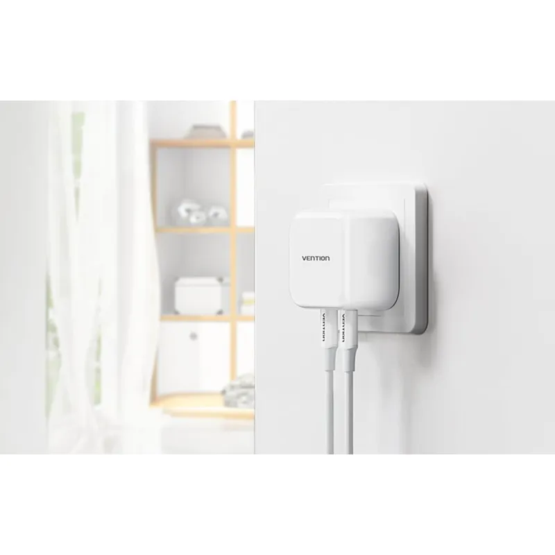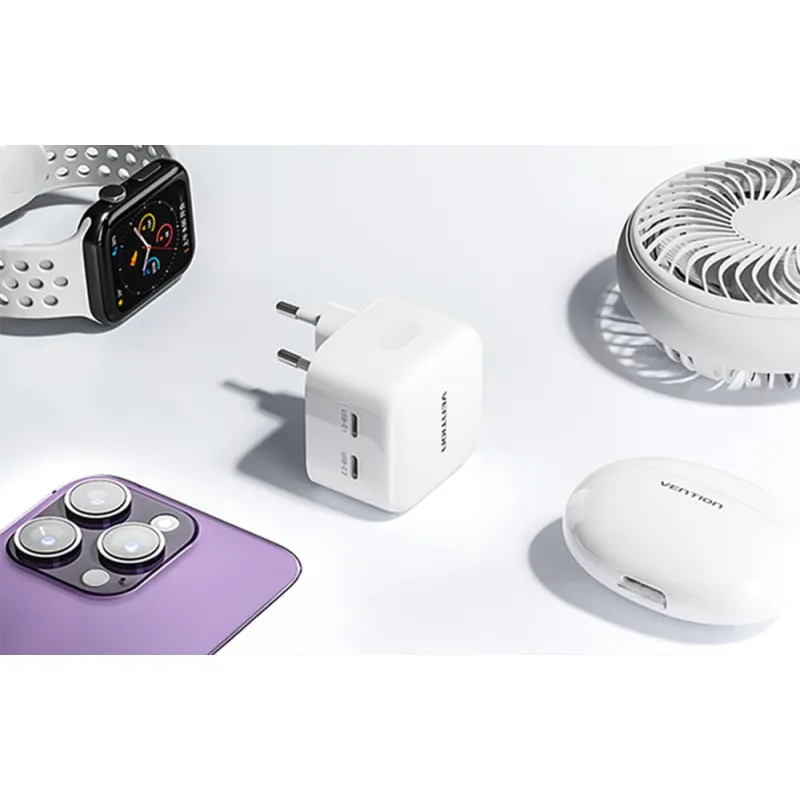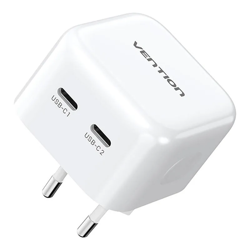 Vention FBPW0-EU įkroviklis turi du 35W USB-C prievadus, leidžiančius įkrauti du įrenginius vienu metu. Tai idealiai tinka tiems, kurie nori greitai įkrauti tiek išmanųjį telefoną, tiek planšetinį kompiuterį ar nešiojamąjį kompiuterį. Dėl GaN technologijos įkroviklis yra mažesnis, lengvesnis ir efektyvesnis.