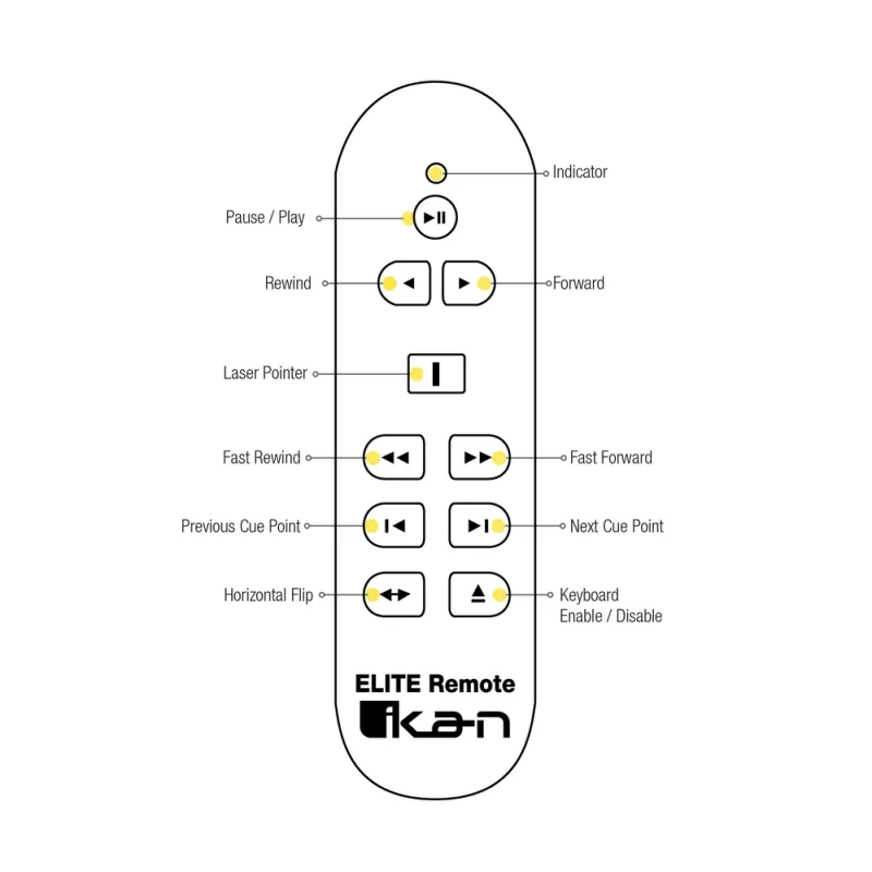 Ikan is proud to announce ELITE REMOTE, the world’s first and only Bluetooth teleprompter remote for ipad and Android tablets. ELITE REMOTE features 9 soundless buttons for precise and complete control. There is also a convenient laser pointer for presentation applications. With industry standard Bluetooth 4.0, you can control your iPad from up to 20 feet away.