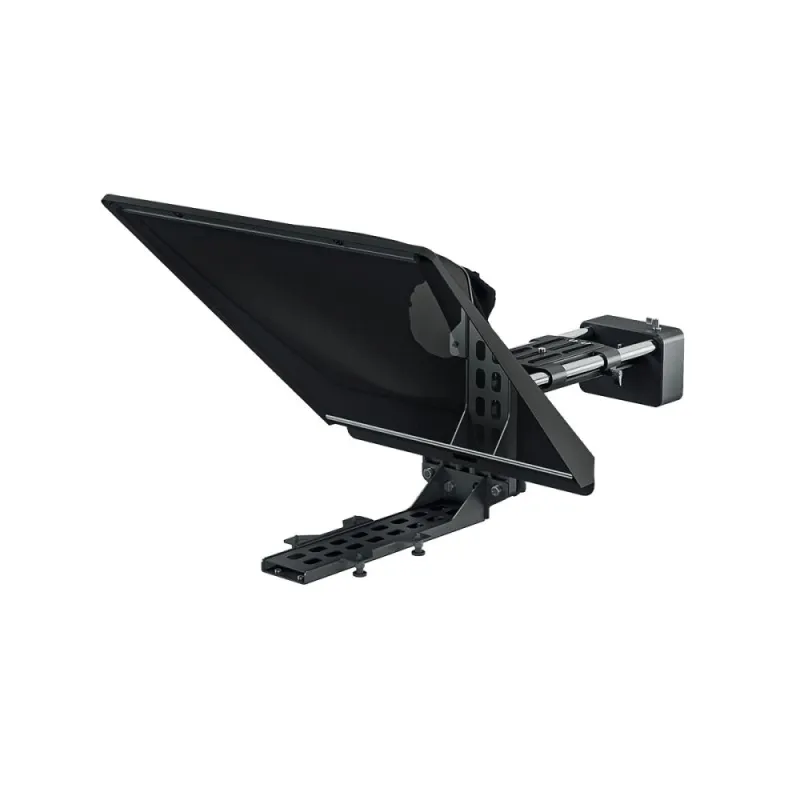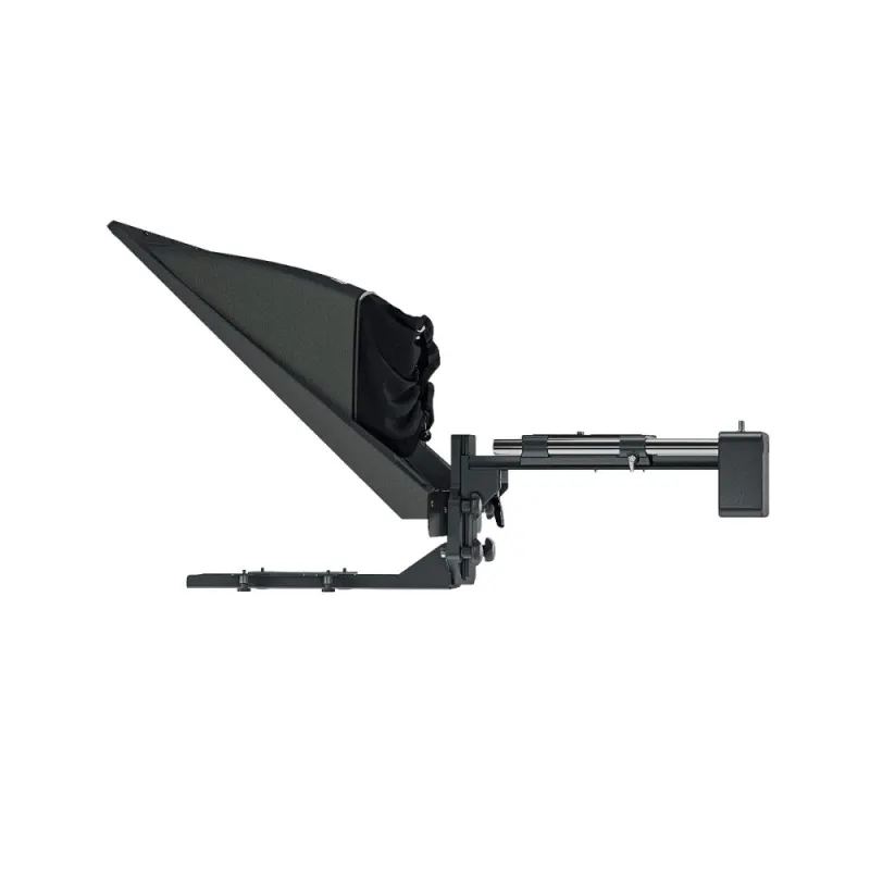 Its design makes sure that setup goes smoothly with simple tuning of the hood height so that the lens is always in the middle of the glass, and a counterweight is included to centre the load of the prompter on the tripod or pedestal.