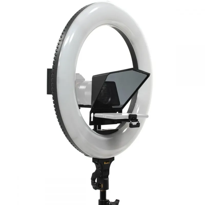 The HomeStream Smartphone Teleprompter is Ikan's first teleprompter for specifically designed smartphones in mind. Using the downloadable HomeStream Teleprompter app on either iOS or Android you can use your smartphone as a teleprompter display. The teleprompter offers a large 70/30 beamsplitter glass that clearly displays your text, while at the same time conveniently attaches to the lens of your camera. The ring light teleprompter combo allows for quick small studio set up.