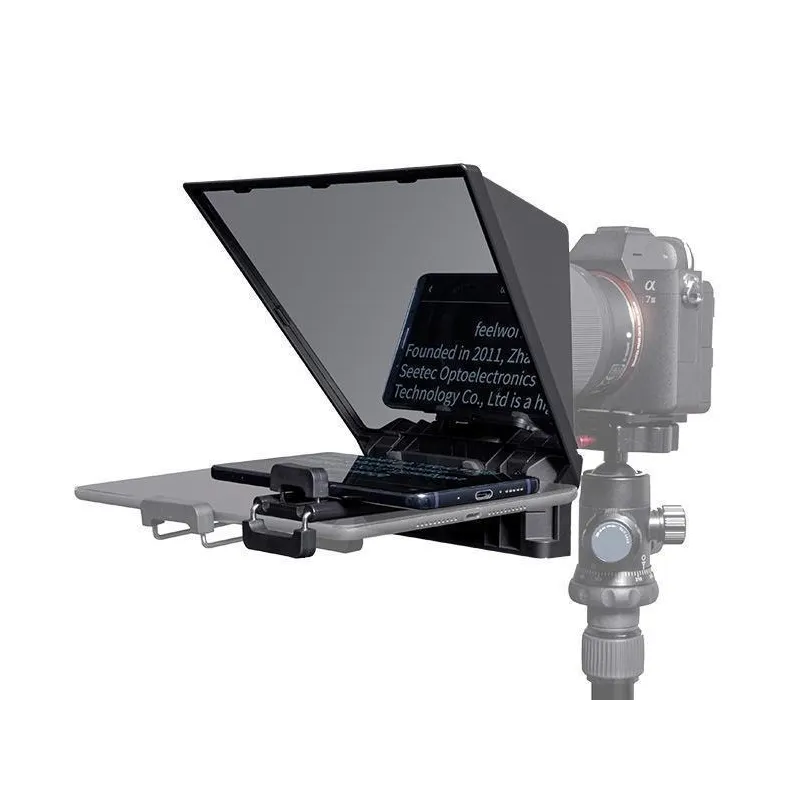 Portable Teleprompter for Smartphone/Tablet/DSLR Camera with Remote Control & Lens Adapter Rings.