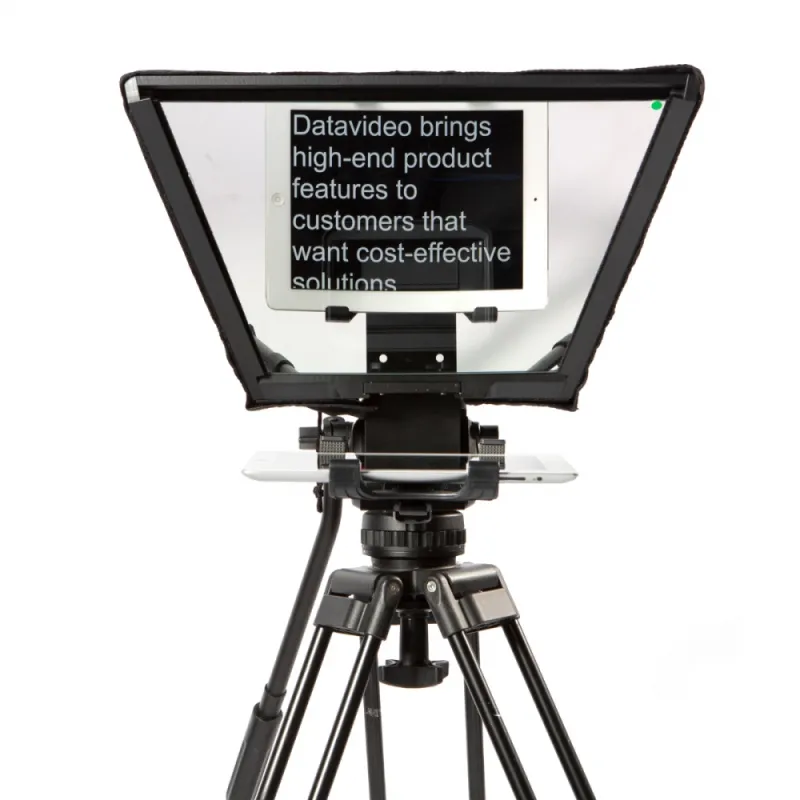TP-650 is designed to accommodate larger tablet computers including the 12.9" iPad Pro. Why struggle with expensive re-takes, on stage talent drifting off script or a presenters’ loss of eye contact with the viewing audience? The Datavideo Prompter Kit, TP-650, is designed to help you overcome these problems by converting a tablet computer (not supplied) into a low cost and effective prompter.