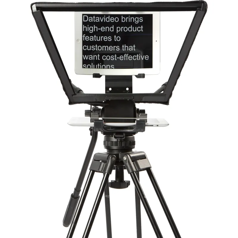TP-650 is designed to accommodate larger tablet computers including the 12.9" iPad Pro. Why struggle with expensive re-takes, on stage talent drifting off script or a presenters’ loss of eye contact with the viewing audience? The Datavideo Prompter Kit, TP-650, is designed to help you overcome these problems by converting a tablet computer (not supplied) into a low cost and effective prompter.