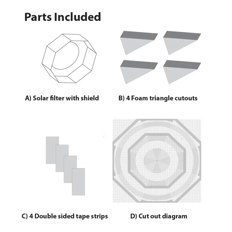 NOTE: All Explore Scientific Solar Equipment is rated ISO12312-2 supplied by Thousand Oaks Optical and approved for direct observation of the Sun.