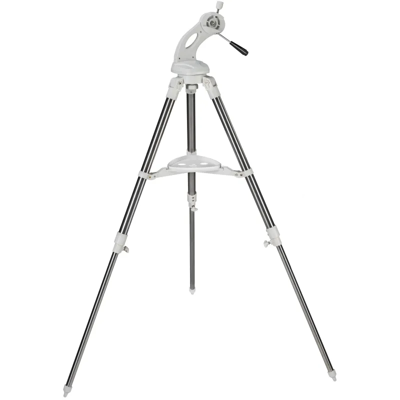 The new BRESSER NANO AZ telescopic mount has been developed to ensure quick and easy operation. The mount is as easy to use as a photo tripod , it is just more stable and easily carries telescopes weighing up to 4 kg. The mount can be easily swivelled by hand to the left, right, up and down, making it really easy to use and with a weight of only 3.4kg , the mount is also easy to transport. Ideal for the easy entry, as a travel mount or for quick observations . The telescopes are securely held by a clamp for 44mm prism rails, the so-called GP Level. This is an international manufacturer-independent standard, whereby all telescopes with such a GP prism rail can be installed on this mount. The sturdy and height-adjustable stainless steel tripod included in the scope of delivery is the ideal base for the BRESSER NANO AZ mount.