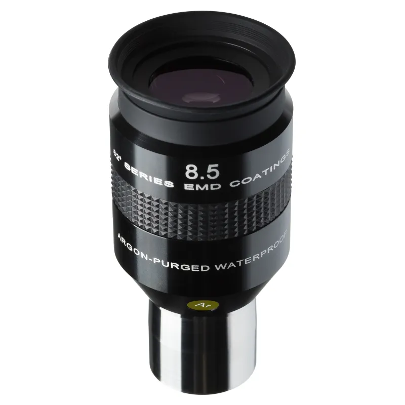 The visual effect of these new 8,5mm 82° LER eyepieces with their long eye-relief and their 82° apparent field is truly a full-immersion experience. Your eye is relaxed , allowing you to easily use the averted vision technique to study faint details across a huge field-of-view. The 82° Series eyepieces come with foldable eyecup s make handling and using in the field easy. As experienced astronomers know, eye comfort is critical when trying to observe at the visual limits of the telescope. To keep internal reflections to a minimum, all internal surfaces of the eyepiece barrel are flat black, as well as the edges of the lenses themselves to minimize the scattering of light within the lenses themselves.