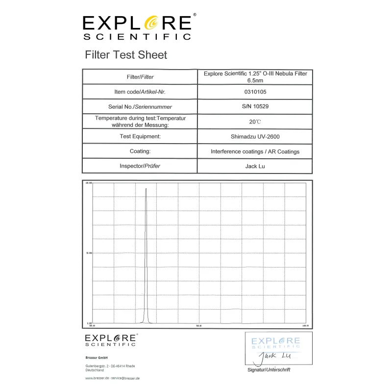 - High-quality EXPLORE SCIENTIFIC O-III filter