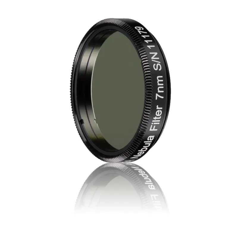 This filter's narrow passband of only 7 nm bandwidth works out the faint emission nebulae or makes them visible even under difficult urban conditions.