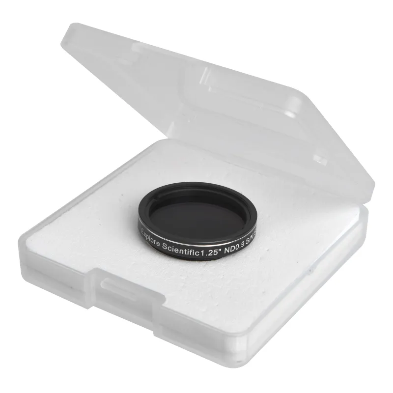 EXPLORE SCIENTIFIC 1.25" ND0.9 Gray Filter reduces brightness and increases contrast for accurate observation of bright objects