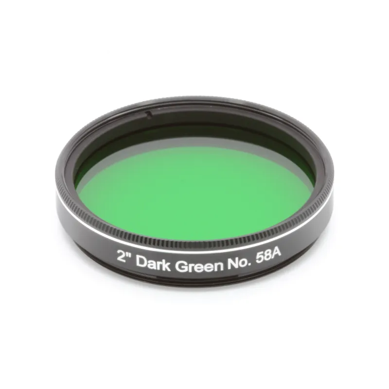 The green filter is to increase the contrasts enormously between the red and the blue regions of the cloud structures on the gas planets Jupiter and Saturn. Seeing our Earth Moon through the green filter, the contrasts of each ray crater become clearly more visible. This filter should be used at an aperture of 8“. What ist a color Filter for and do we really need it ? Color Filters darken the light slightly, that reaches the eye or the sensor of the camera. This eliminates for instance stronger transitions. The result is that your picture turns out with more contrast which automatically shows more details. FEATURES
