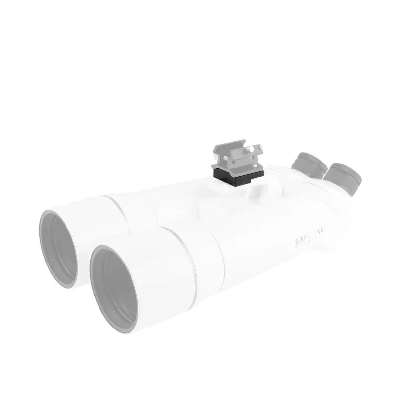 Using this adapter, you can attach the EXPLORE SCIENTIFIC Hybrid 2 in 1 finder shoe (art. 0620158) to the EXPLORE SCIENTIFIC large binoculars and use an LED finder or optical finder. This then allows you to quickly and precisely place the desired observation objects into the binoculars' field of view.