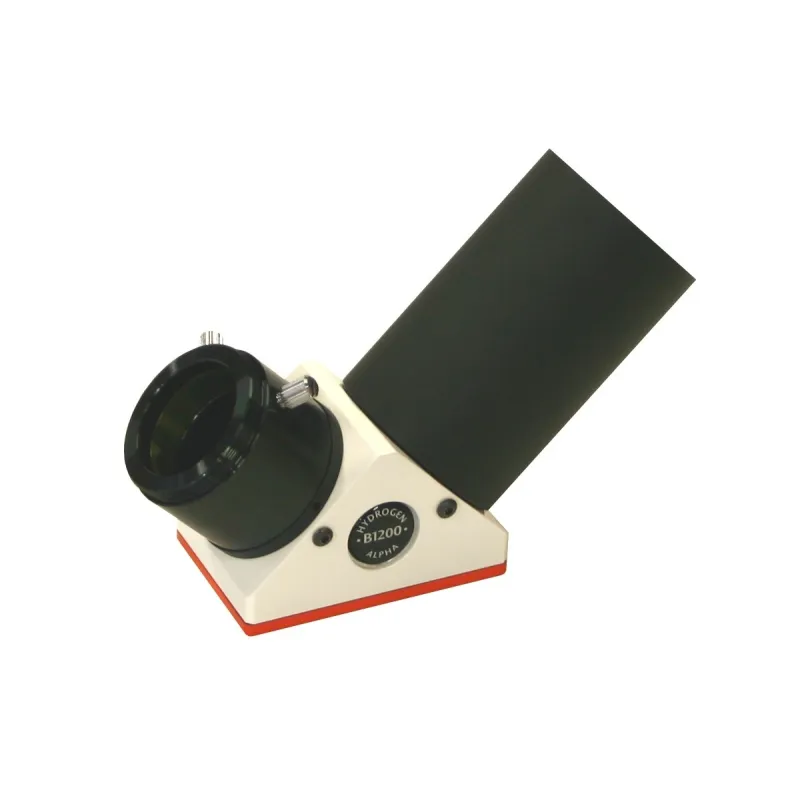 The B1200d2 is installed in a 90° star-diagonal housing, for 2 inch (50.8mm) focuser on the telescope side, and with T2 thread and 1.25 inch (31.7mm) eyepiece connection on the eyepiece side. The B1200d2 can be used at LUNT H-alpha systems, if the used telescope has a 2 inch focuser and up to 1080mm focal length.