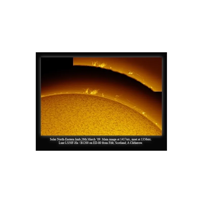 The LS50FHa H-alpha Etalon filter system with 50mm aperture (no central obstruction) for use on any refractor and many other telescopes. Because the LS50FHa has an estimated bandwidth of <0.75 Angstrom it is capable to providing high contrast views of both solar surface and edge detail (prominences).