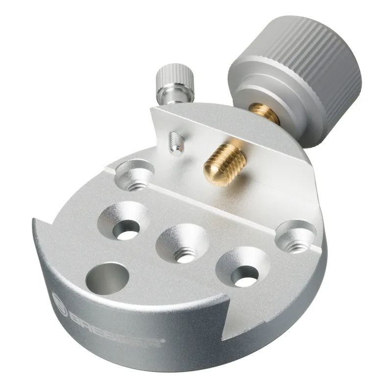 Universal dovetail clamp suitable for all optical tubes which are equipped with a standard 44mm dovetail rail (Messier/ES/GP/Vixen) . Also a screw kit is included for mounting the dovetail clamp direct on the top of the handle of all BRESSER Messier und EXPLORE-SCIENTIFIC telescopes. Thus a parallel mounted guiding telescope can be set up very easy and enables long exposure astrophotagraphy with autoguiding. The prism clamp has 2 x 6mm countersunk holes (35mm hole spacing) and 3 additional 1/4" photo tapped holes at 120 degrees angular distance on a pitch circle diameter of 55 mm to allow a versatile adaptation to a variety of other telescopes and adapter plates.