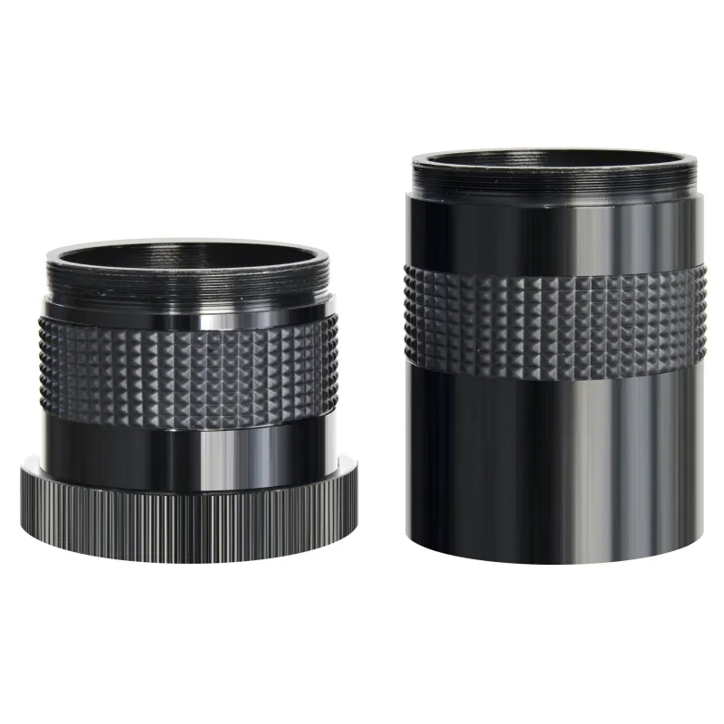 The BRESSER Camera-Adapter M35/T2 for MC/MCX100/127 is principally designed to connect a DSLR camera (with appropriate manufacturer-specific T2 T-ring, available separately) to the Bresser MC-100 and MC-127 Maksutov telescopes which have a built-in M35 connecting thread. You can also use wider-bodied astronomical cameras (non-c-mount), which have T2 threads built into their bodies, as standard with this camera adapter. This adapter can be separated into two different lengths of 30mm and 80mm (which both truncate in a T2/M42 thread). The use of these different lengths of extension tube allows the user to vary the projection of image on to a camera chip and get the best framing for the size of object being imaged.