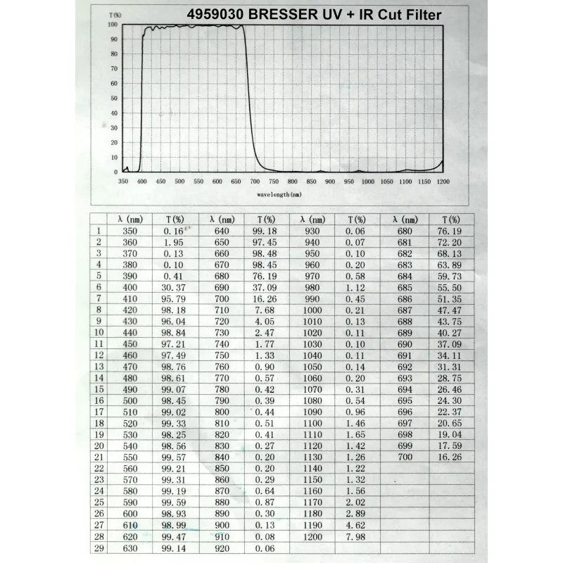 Blocks the light in the UV and IR waveband and thus improves image sharpness in lunar and planetary photography