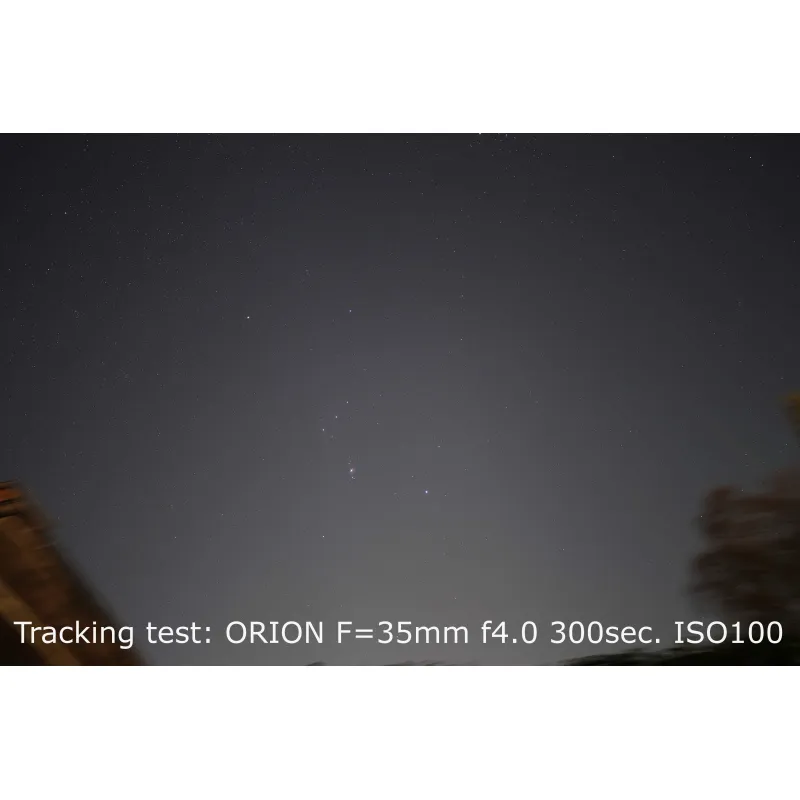 After setting up the light and compact photo mount , simply set the approximate latitude (pole height) to the scale and aim Polaris through the illuminated pole finder scope. Then mount the camera with the photo lens using the quick-release plate on the supplied ball head. With the ball head, the camera can be aligned and determined at any time on any section of the sky. As soon as the tracking motor is switched on, long-time exposure can be started immediately. This does not even take 5 minutes ...