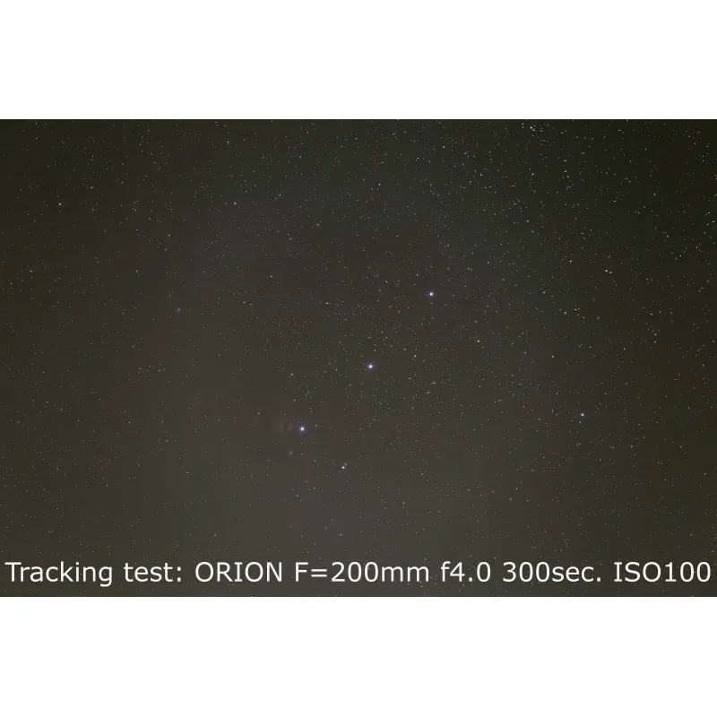 After setting up the light and compact photo mount , simply set the approximate latitude (pole height) to the scale and aim Polaris through the illuminated pole finder scope. Then mount the camera with the photo lens using the quick-release plate on the supplied ball head. With the ball head, the camera can be aligned and determined at any time on any section of the sky. As soon as the tracking motor is switched on, long-time exposure can be started immediately. This does not even take 5 minutes ...
