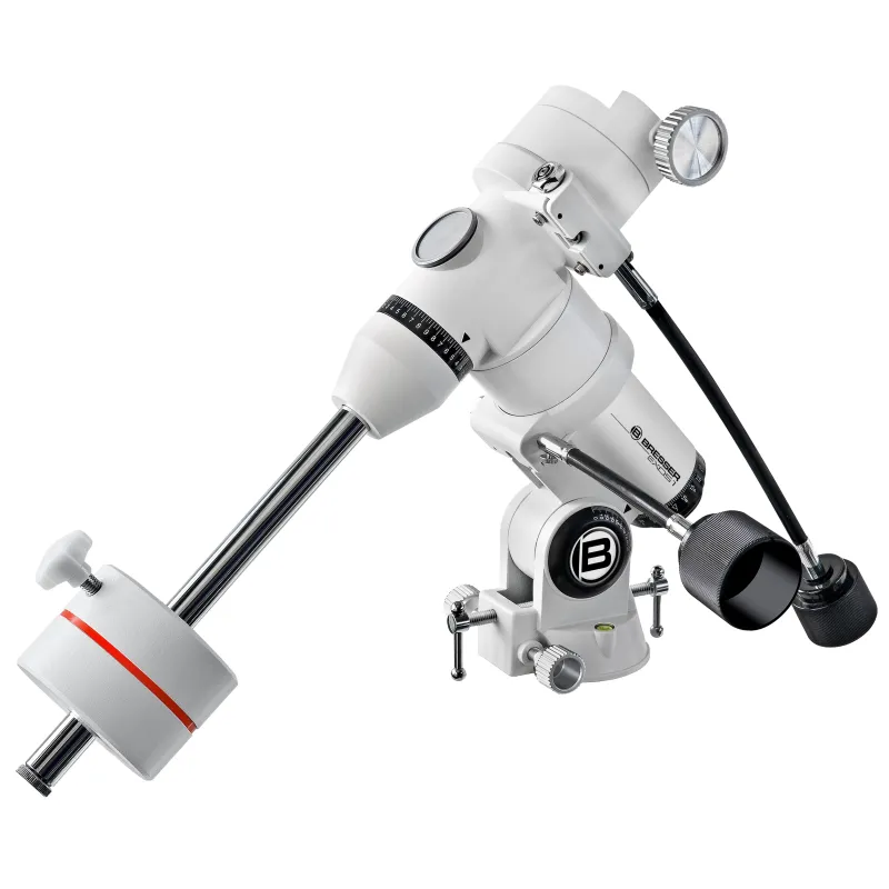 Mount and Tripod . The BRESSER Messier beginners series of telescopes. Within this series you find smaller optics mounted stable on the new BRESSER EXOS 1 mount. This combination means more value for money and puts an end to flimsy beginners scopes which discourage most of the beginners due to small, under engineered mounts. The EXOS 1 with a robust stainless steel tripod bears optical tubes weighing up to 7kg stable for visual observation. The optional motor drive for the RA axis makes usage even more comfortable, so there is no need of manual tracking and the object is kept steadily in the field of view.