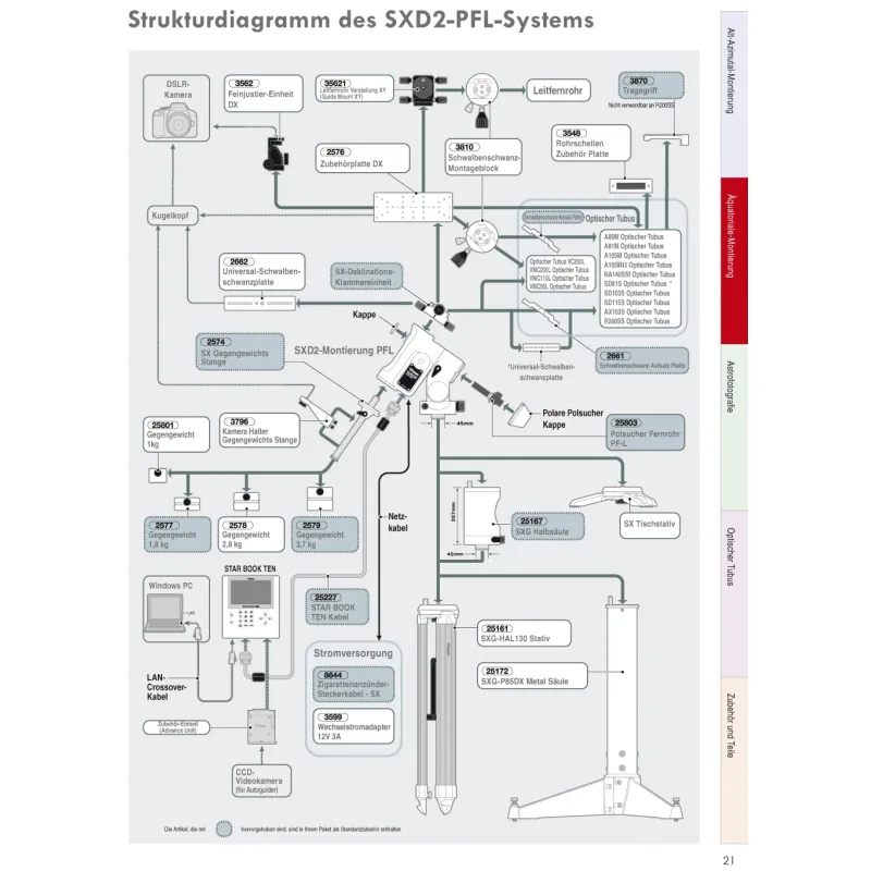 The SXD2 mount comes with the new STARBOOK TEN controller and the PFL polar viewfinder , which allows you to configure the mount quickly and easily via reference stars.