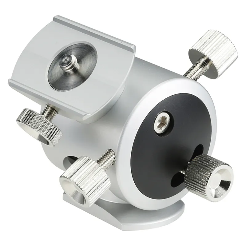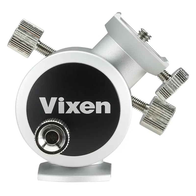 The Polar fine adjustment unit is an accessory designed for installation of star tracking mounts such as POLARIE and the AP Star Tracker System with attachment between the photo stand and the star tracking mount. This device enables fine horizontal and vertical adjustment with installation of a polar axis target. The swivel head , which is designed exclusively for use on the base of star trackers, can be secured or removed with a single screw. The twin screw system for inclination and azimuth adjustment ensures fine movement and rigid locking. The adjustable inclination angle of 0゚~85゚ enables use in a range of positions and situations.