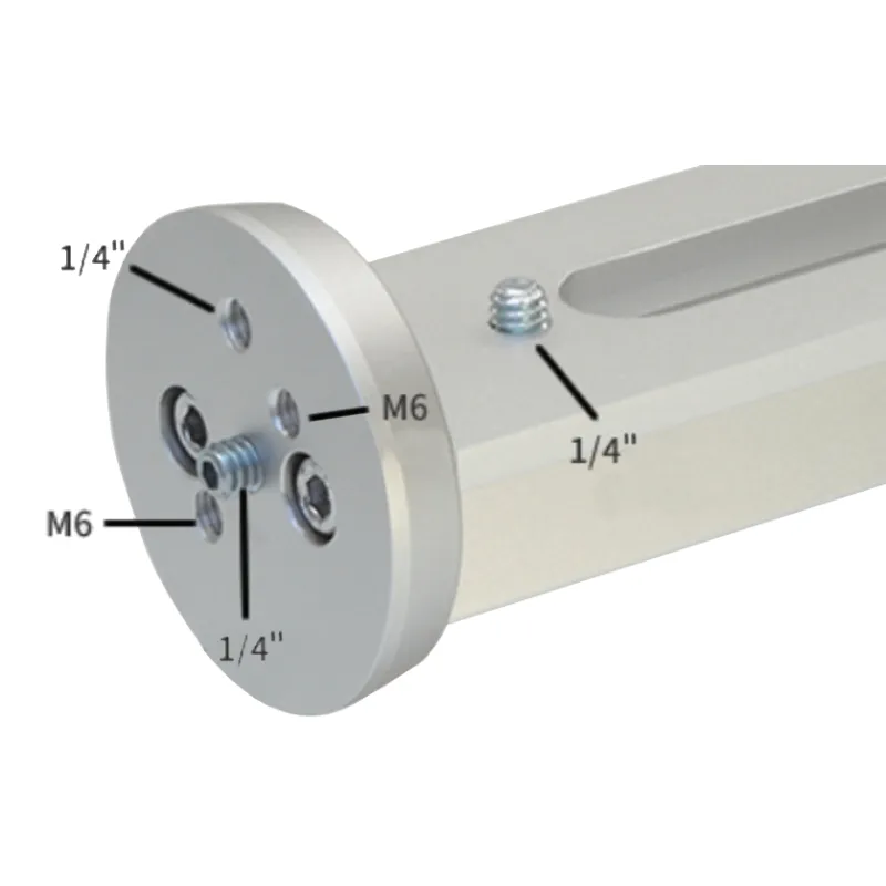 - Hole bores 1x 1/4 inch, 1x 1/4 inch external thread, 2xM6 internal thread on the plate