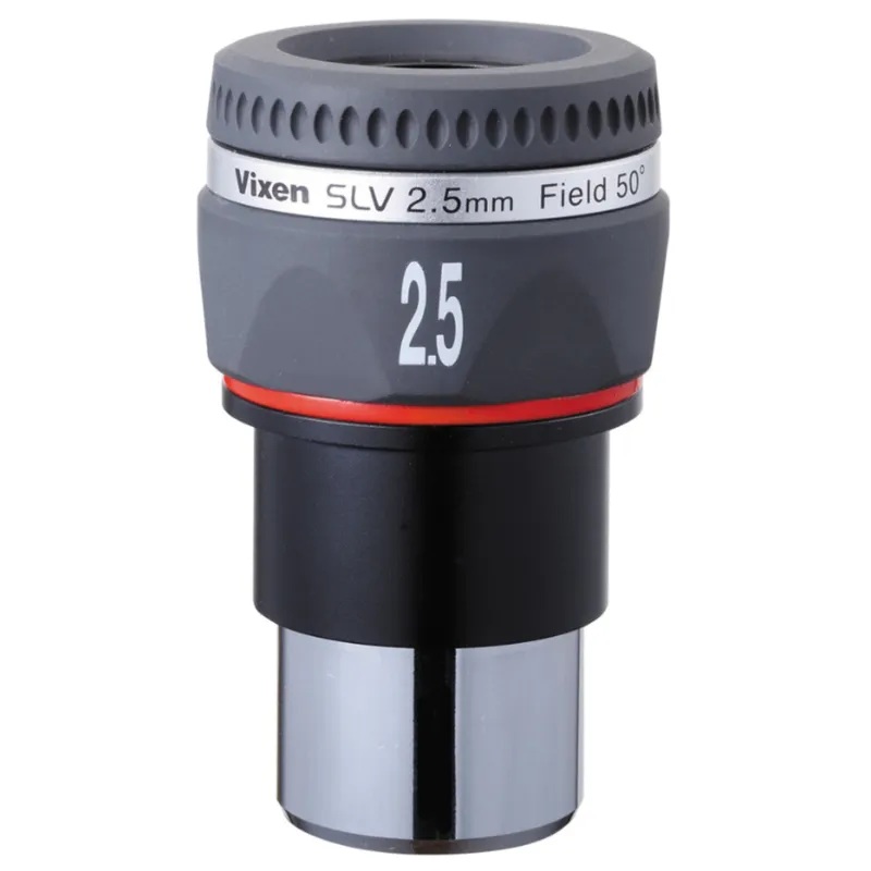 The Vixen SLV eyepieces with high-quality lanthanum glass deliver remarkably clear and high-contrast star images right up to the edge. This 2.5mm is the most powerful in the range and aimed at those with shorter focal length telescopes, who need higher powers for lunar or planetary use, or double star observers, who need the maximum power possible for star separation. Please make sure you look at the powers that this eyepiece can give with various telescopes carefully, as this eyepiece can produce some very impressive results if paired well with a telescope, but can overpower longer instruments very easily.