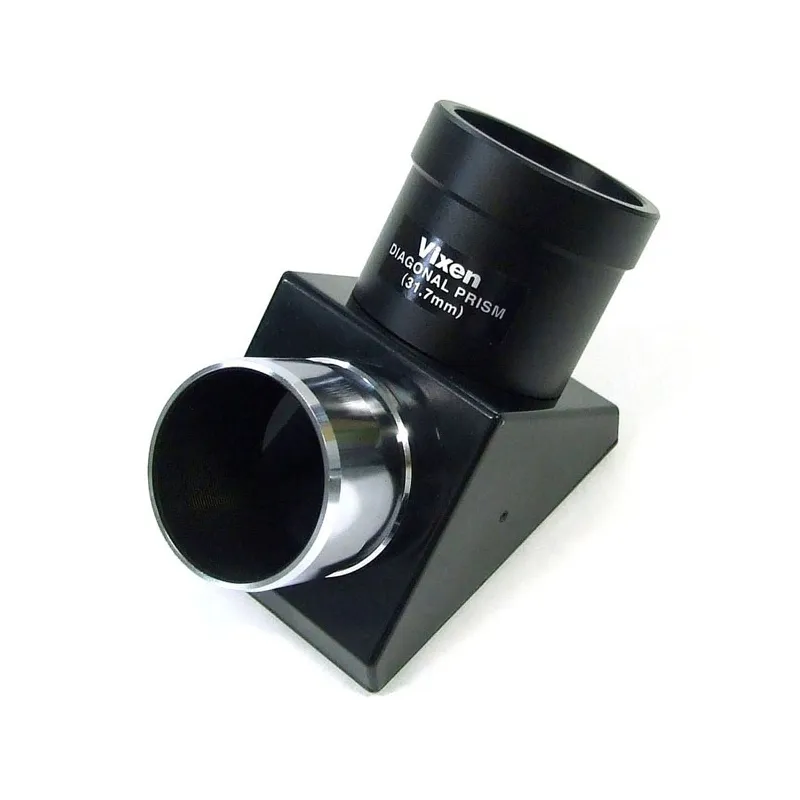 This Vixen 90° mirrored Star Diagonal , with 1.25” / 31.7 mm nosepiece connection, makes observing objects higher up in the sky much more pleasant and also allows the user to revolve an eyepiece to a more comfortable observing position. This star diagonal is a good quality option and compatible with a large array of refractors and Cassegrain design instruments . It will accept 1.25” / 31.7mm eyepieces and accessories and also has a threaded nosepiece, into which can be fitted 1.25” filters, or Barlow elements, saving you the bother of having to keep swapping these when using different eyepieces. The inside of the diagonal is blackened to minimise internal reflections and light scatter and the body has a pleasingly well-engineered feel to it, without being too weighty.