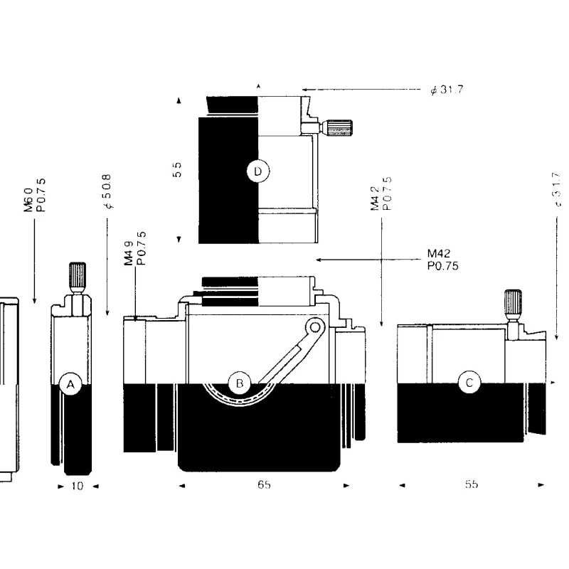 - Integrated T-2 thread for the camera