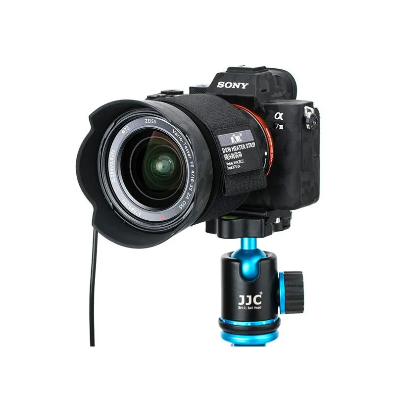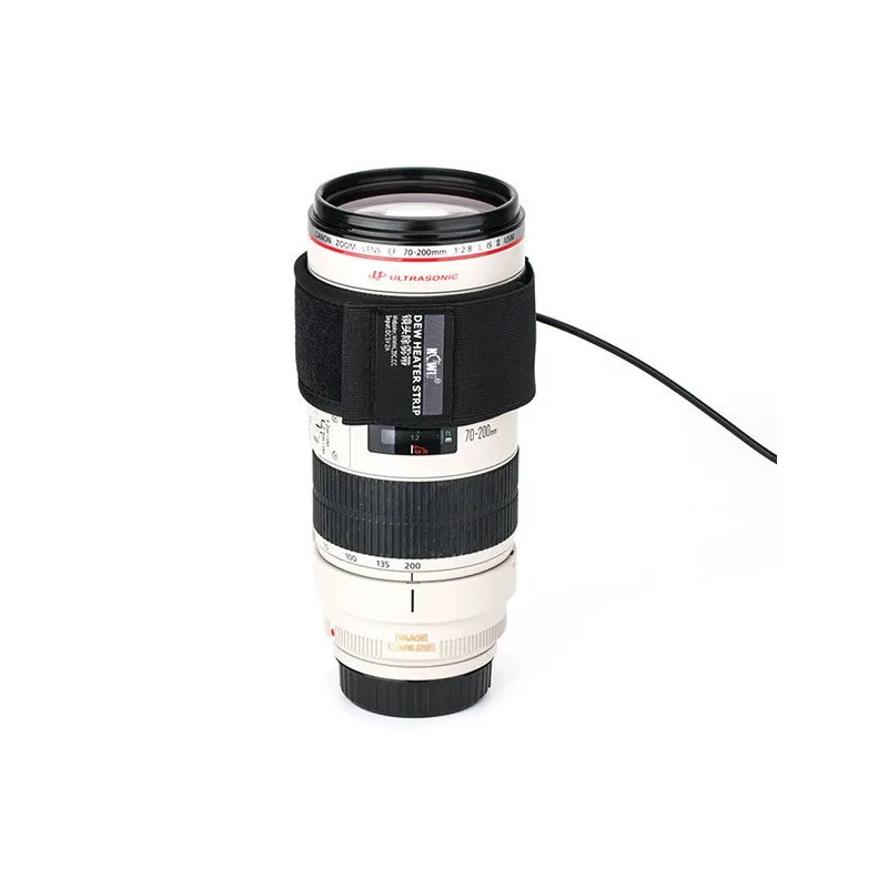 The JJC DHS-1 Dew Heater Strip is specially designed for camera lenses and telescopes. It prevents condensation by heating the lens on a camera or telescope. It fits lenses with an outer diameter of up to 11 centimeters.