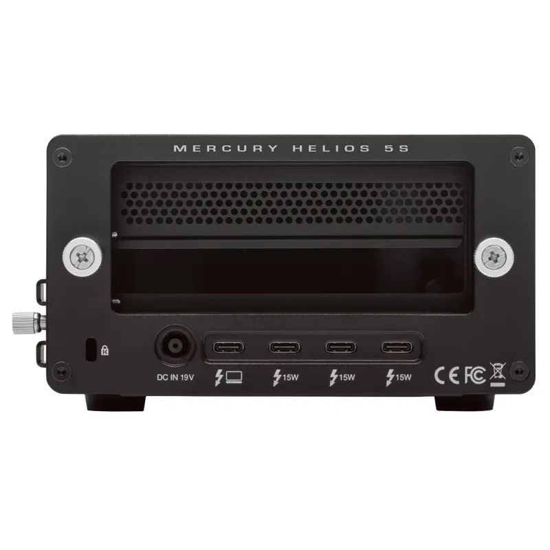 OWC MERCURY HELIOS 5S is a versatile expansion solution that allows you to connect PCIe cards to your Thunderbolt 3, 4, or 5, and USB4 computers. This device not only provides additional Thunderbolt 5 ports but also enhances your systems connectivity options.