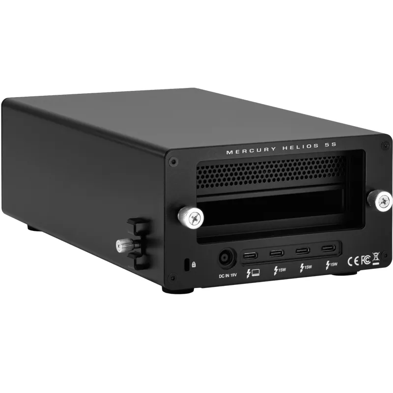 With the OWC MERCURY HELIOS 5S, you can easily expand your computers capabilities by adding high-performance PCIe cards, making it ideal for professionals in video editing, graphic design, and other demanding fields.