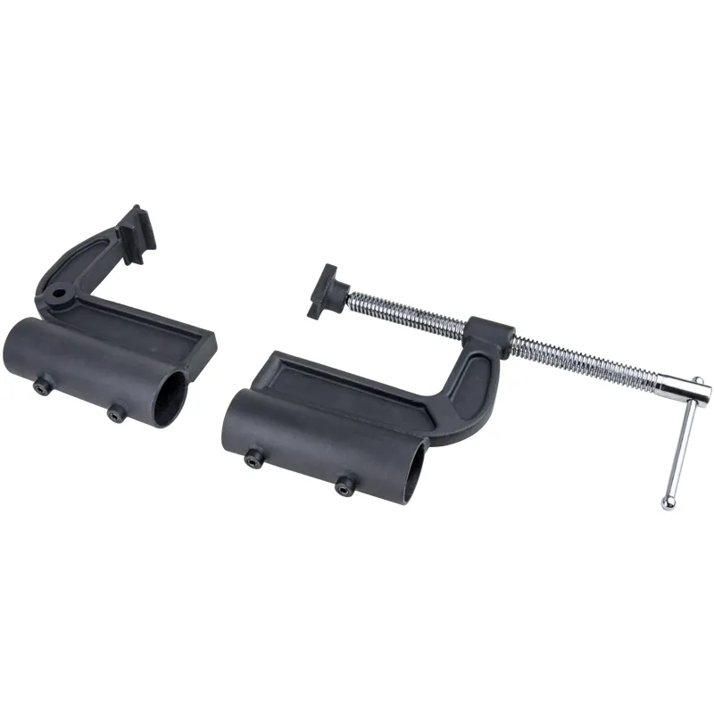 This product consists of two halves of a 10 clamp and welded speed rail fittings, designed to accommodate 1-1/2 schedule 40 (48.3mm) pipe. It effectively creates a C-clamp suitable for any size span.
