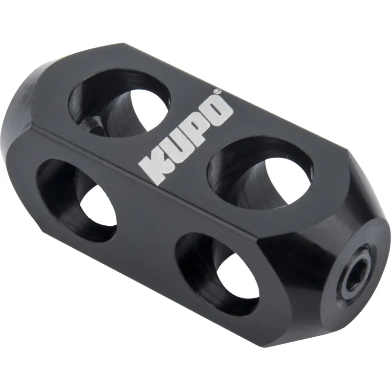 Constructed from CNC aluminum alloy, this rectangular connector comes with two 5/8 (16mm) holes on each lateral face and a 3/8-16 set screw in each base, allowing for a variety of combinations with any rods of 5/8 (16mm) in diameter.
