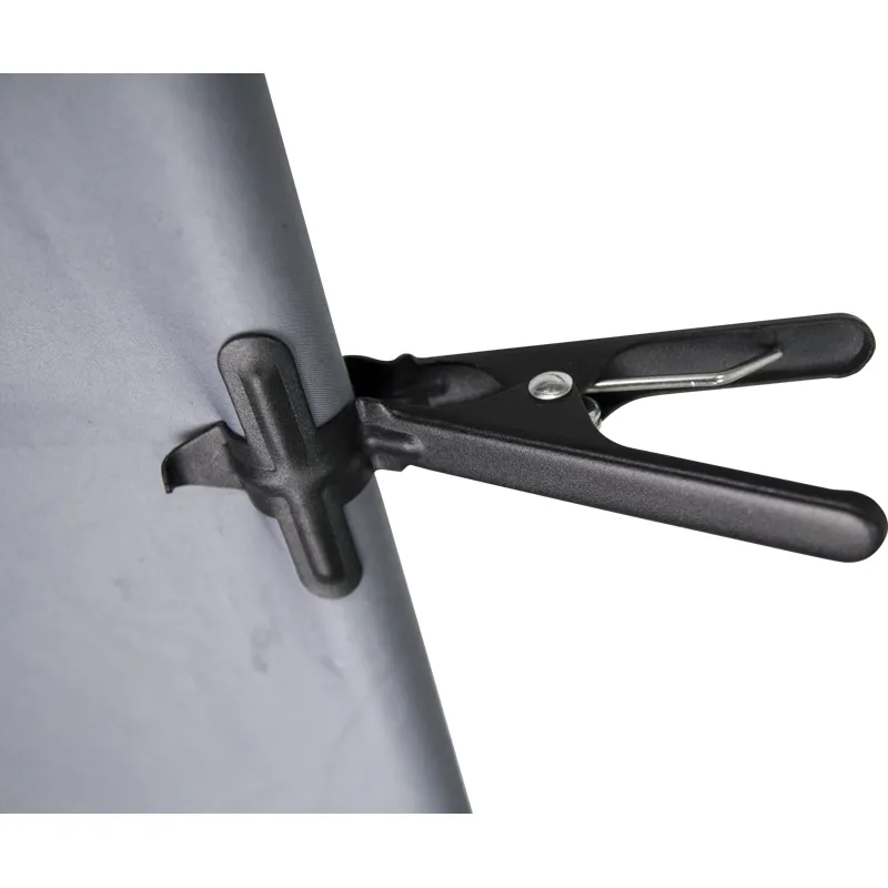 The small spring clamp is built with rigid steel and has a superior black powder coating, which is designed for mounting around the 4.6 cm sections while holding paper, reflective material, backgrounds, or light Gobos.