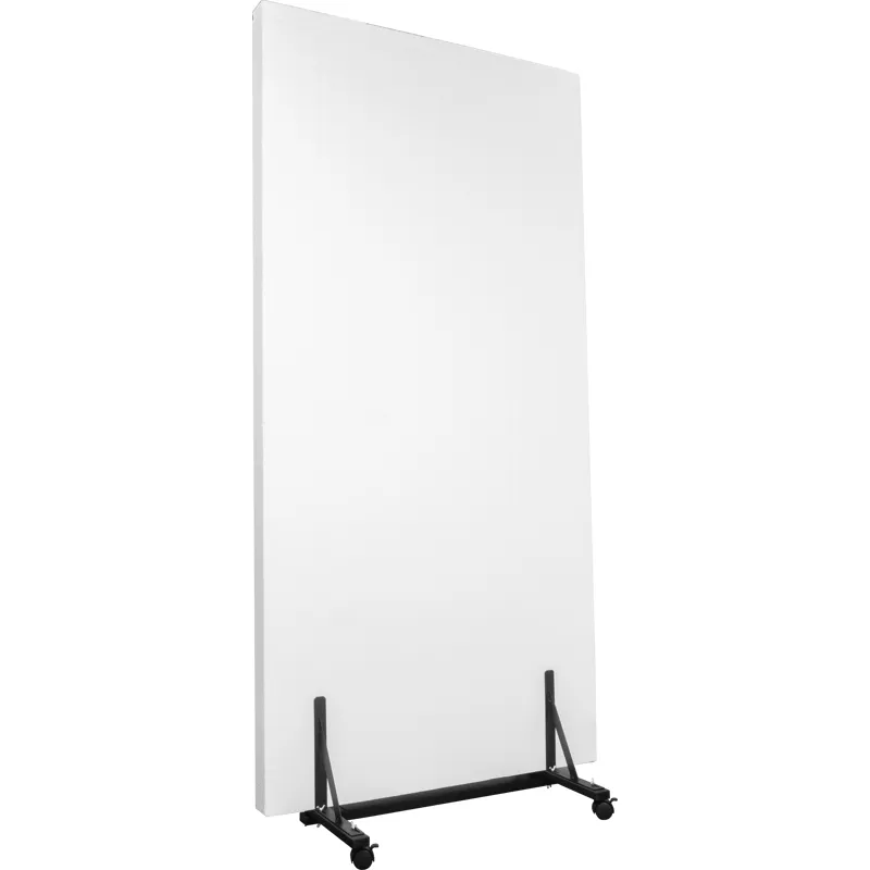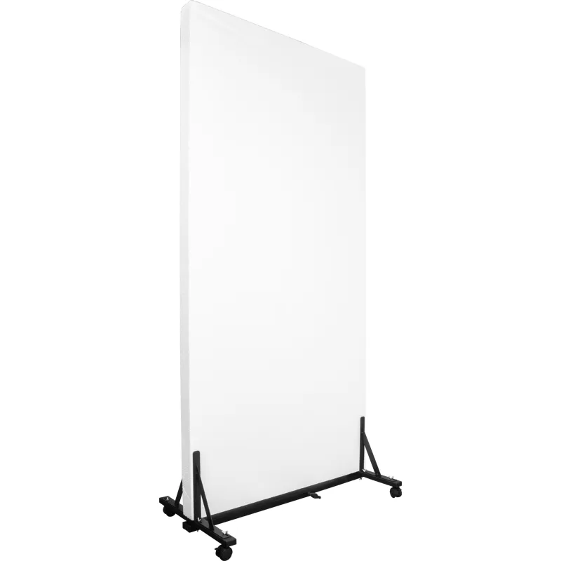The aluminum foamcore holder allows for easy securing of the board and makes it movable with the casters in the studio. It features a length-adjustable holder that fits boards with a thickness ranging from 1 inch (2.54 cm) to 3 inches (76 cm). Additionally, the length of the stand can be extended from 68 cm to 116.5 cm to accommodate larger boards.