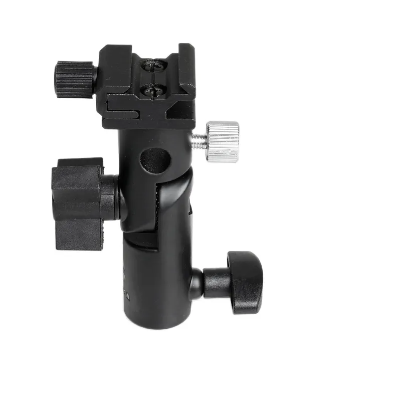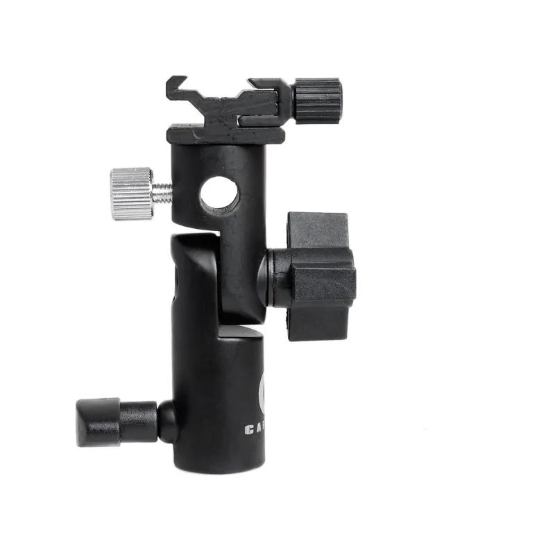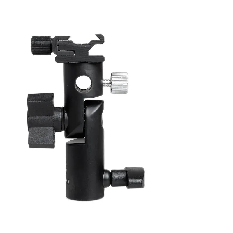 Suitable for almost all reportage flash units and umbrellas For mounting on the spigot of the light stand 180 degree tilt angle Made of durable aluminium 3 year warranty ,