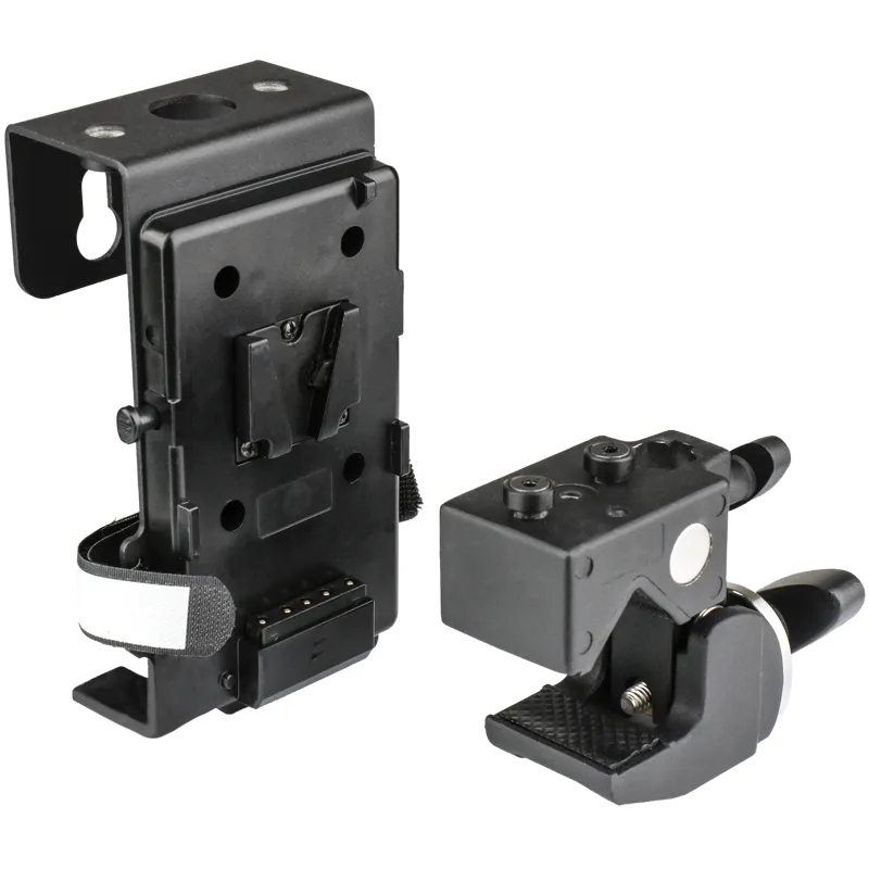 Made with the Convi clamp (KCP-700) and a V-mount battery bracket, it offers a great storage and mounting solution for your battery and transformer, providing an ideal way to stabilize your light stand and free up floor space. The bracket, constructed from precisely laser-cut steel with a black matte powder-coated finish, works seamlessly with the battery, transformer, and Convi clamp. The built-in V-mount battery holder allows you to securely mount a battery on the bracket effortlessly, and a D-Tap output is also equipped for connecting your gear.